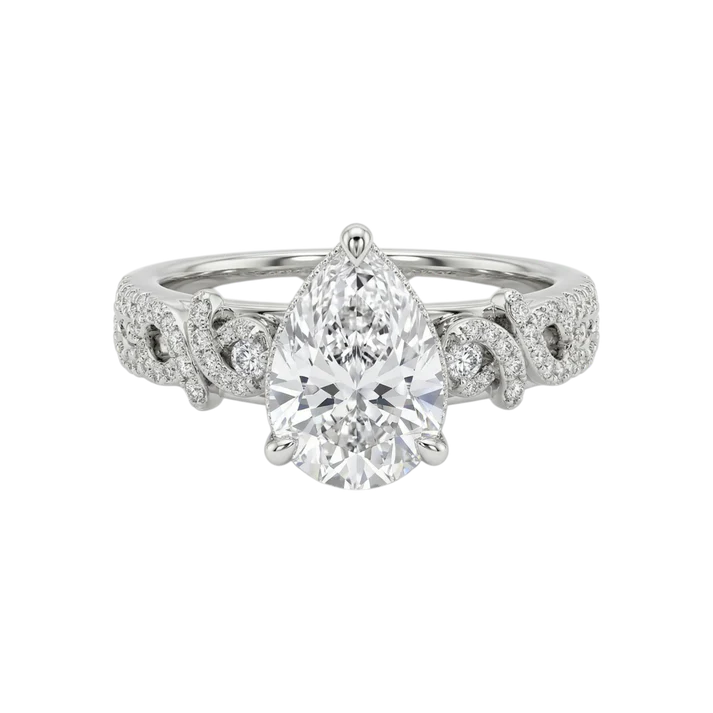 Infinie Signature Pear Cut Moissanite Engagement Ring in 925 Sterling Silver